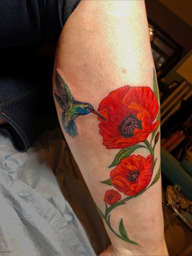 Poppies & Hummingbird